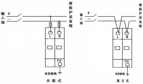 ● 并联式电源防雷模块应并联安装(也可采用凯文接线方式),连接线要求牢固可靠,且要求短、粗、直。